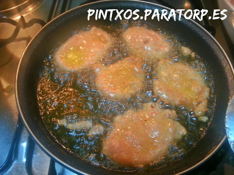 Partimos unas rebanadas de pan y lo freimos en aceite muy caliente.